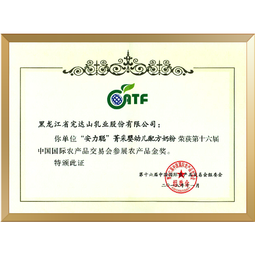 2016年完达山元乳荣获金奖